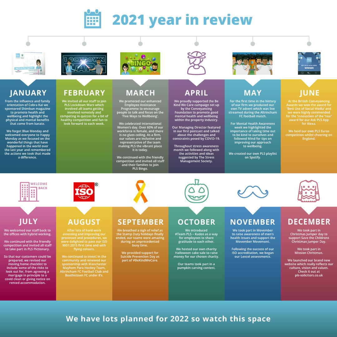 2021 was another jam-packed year for PLS and when we look back at everything that we achieved we can’t quite believe we fitted it all in. Early on in 2021 during lockdown, we wanted to keep our teams engaged and motivated, so we created ‘Lockdown Wars’ and our staff all engaged remotely in a number of fun quizzes for some healthy competition, to keep spirits up. This trend continued throughout the year with additional themed games and competitions and in spring, we promoted our enhanced Employee Assistance Programme, all centred around the wellbeing of our staff.